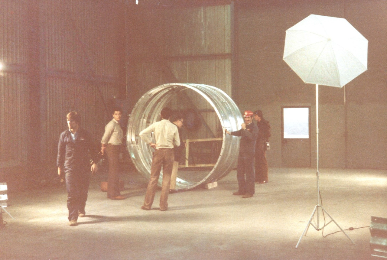 Die Fertigstellung und die Aufrichte der Halle 1 im Jahr 1977 wird zum glücklichsten Tag für die Gebrüder Wetter überhaupt. Das Konzept war durchdacht: Die Kassetten für die Fassade werden vertikal montiert, damit das Wasser abläuft und das Dach besteht aus einfachen Blechen.
