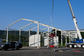 Das Herzstück des Projekts bildet die neue Produktionshalle. Mit Beginn der Stahlbaumontage nahm das Gebäude rasch Form an. Innerhalb kurzer Zeit entstanden die tragenden Strukturen, gefolgt von der Aussenhülle und den Ausbauarbeiten.