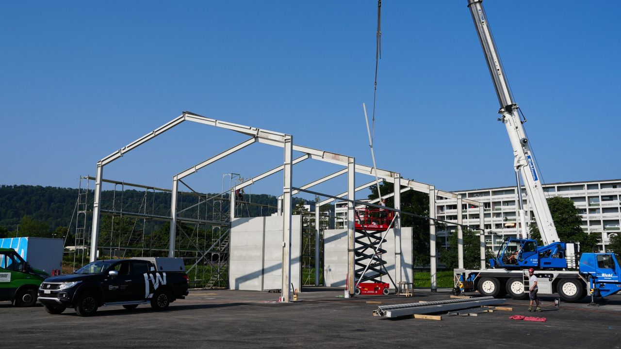 Bereits nach dem Spatenstich schritt das Projekt planmässig voran: Die zweite Bauetappe wurde erfolgreich abgeschlossen, die neue Entsorgungsstation in Betrieb genommen und die Aushubarbeiten für die Produktionshalle termingerecht beendet. Damit konnte früh die nächste Phase eingeläutet werden – der Start des Hochbaus.