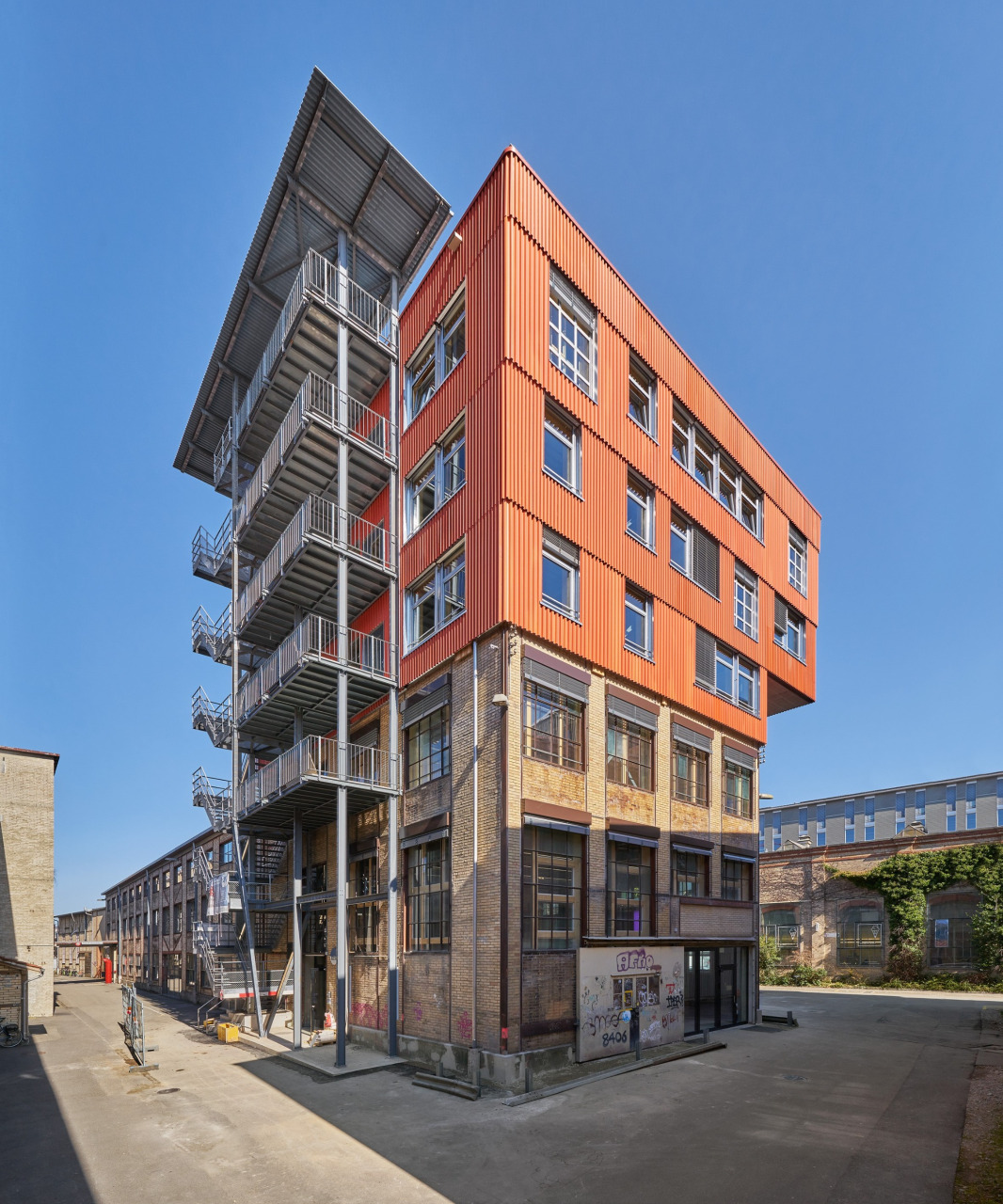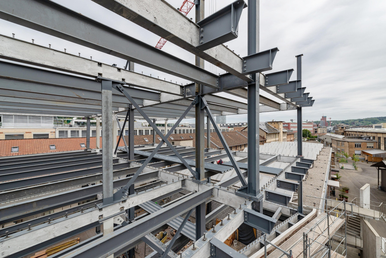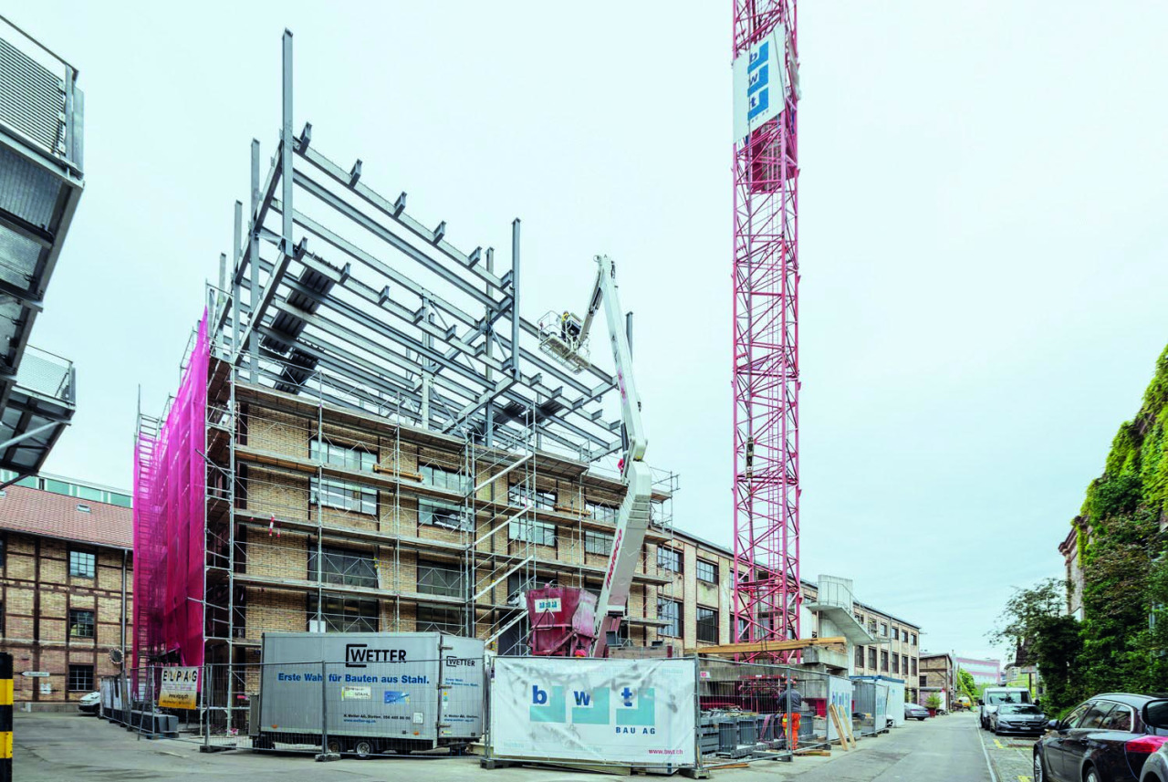 Ein Projekt, das kaum nachhaltiger sein könnte: Ausschlaggebend für die Aufstockung war das Vorhandensein von Werkstoffen aus Rückbauten in der Region. Nebst der Wiederverwendung von möglichst vielen gebrauchten Bauteilen wurde zum Beispiel Stahl aus einer Occasion-Stahlstruktur verwendet. Wo sonst neue Stahlkonstruktionen zum Einsatz kommen, standen durch das Wiederverwenden alter Bauteile komplexere Arbeitsschritte an. Damit man genau wusste, welches Bauteil in welchem Zustand ins Werk kommt, musste schon bei der Demontage jeder Träger einzeln vermessen und nummeriert werden. Zudem mussten die alten Stahlträger optimal bearbeitet werden, damit die gewünschte Flexibilität für die dreigeschossige Aufstockung entsteht.