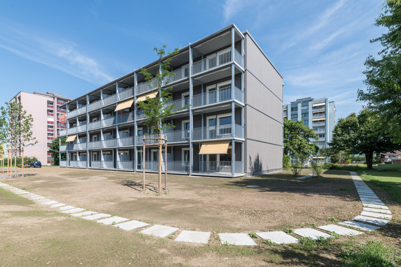 Bemerkenswert: Beim Prototypen in Lenzburg konnte durch Vorfertigung und Standardisierung nicht nur die Baukosten gesenkt, sondern auch die Bauzeit um rund neun Monate verkürzt werden. Mit dieser neuen Bauweise kann somit eine bestehende Wohnungsknappheit innert kürzester Zeit beseitigt und hochwertiger und bezahlbarer Wohnraum realisiert werden.