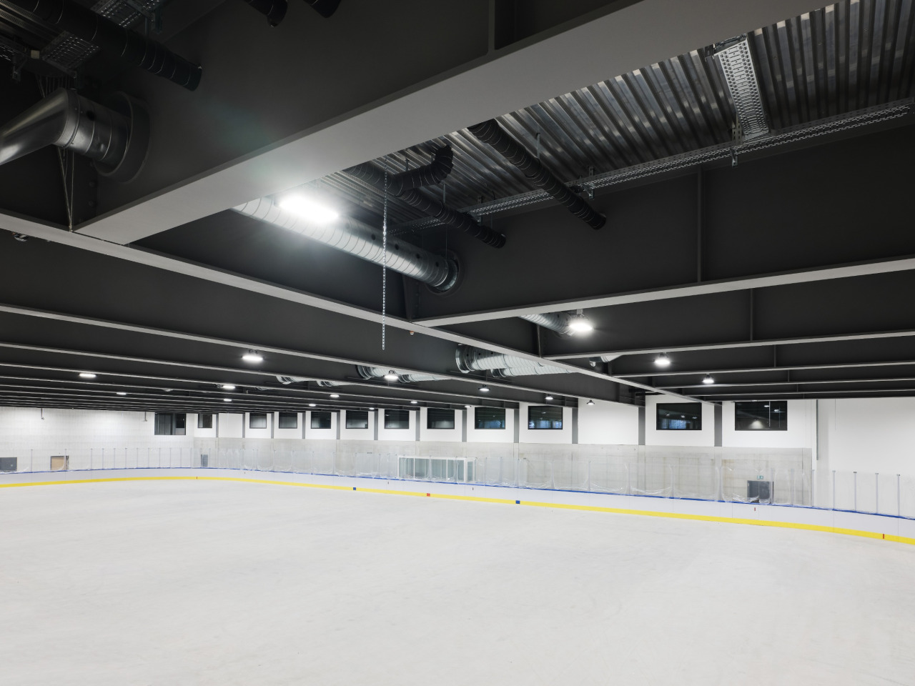 - Eishalle mit Zuschauertribüne und eishockey-spezifischen Infrastrukturen für Goalie- und Schusstraining